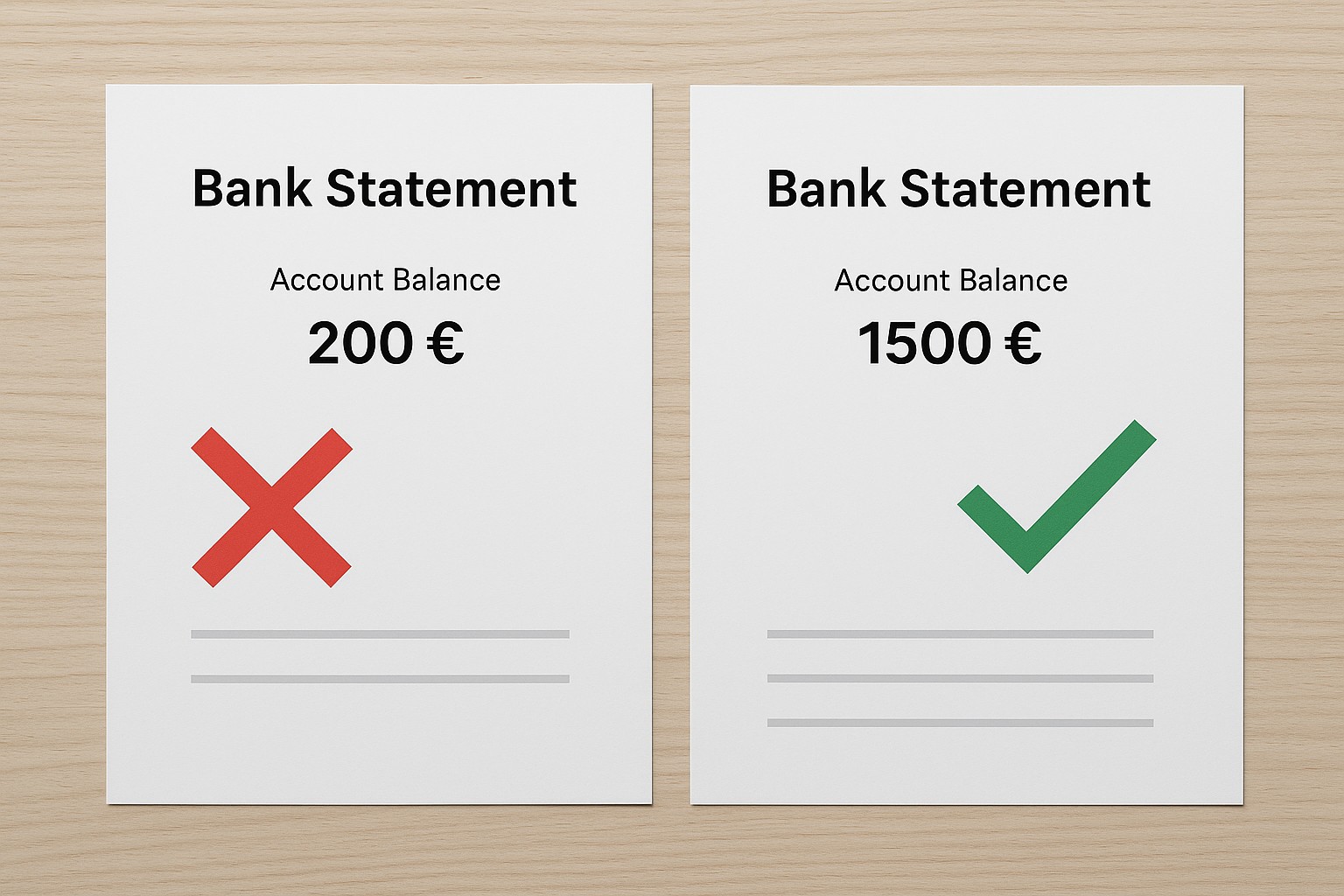 Una de las causas más frecuentes de denegación es disponer de un saldo demasiado bajo en la cuenta o la ausencia de movimientos bancarios. La autoridad consular evalúa no sólo el importe disponible, sino también la estabilidad de los ingresos.